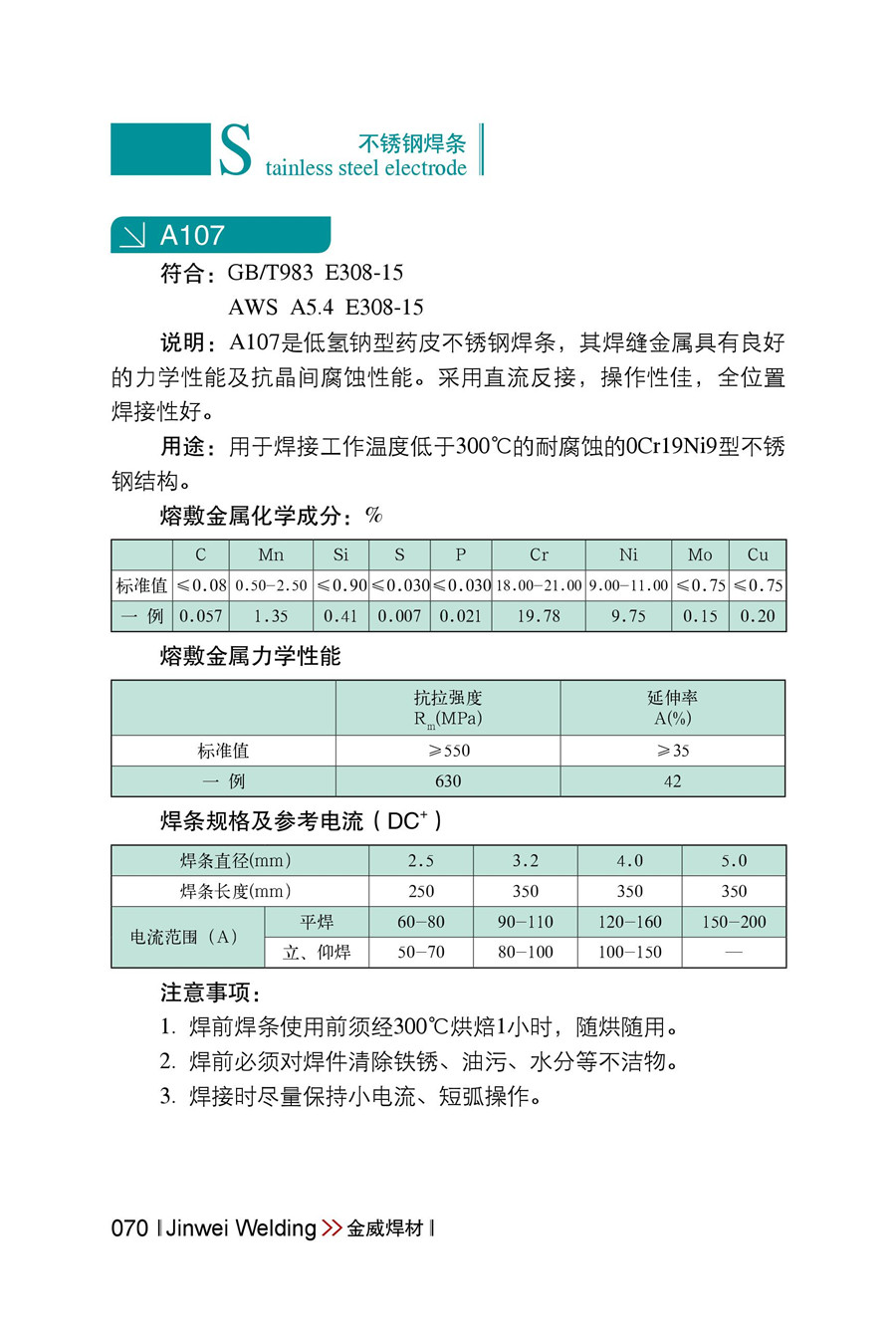 焊接商城 > 北京金威 > 不锈钢 > A107低氢钠型药皮不锈钢焊条