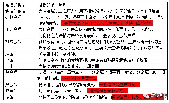 碳化物:金属间摩擦,压力磨损,矿物磨损,热磨损,热疲劳,腐蚀;