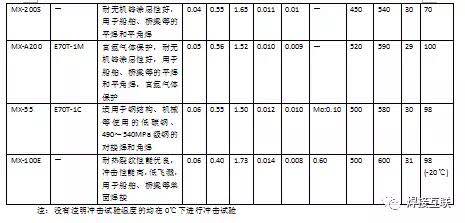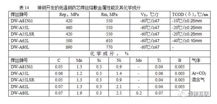 (5)低温韧性良好的药芯焊丝