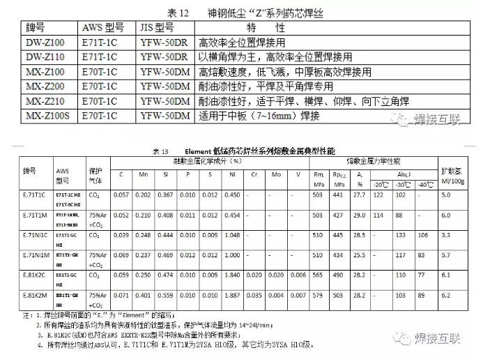 一、国外现有碳钢和低合金钢药芯焊丝的综合分析