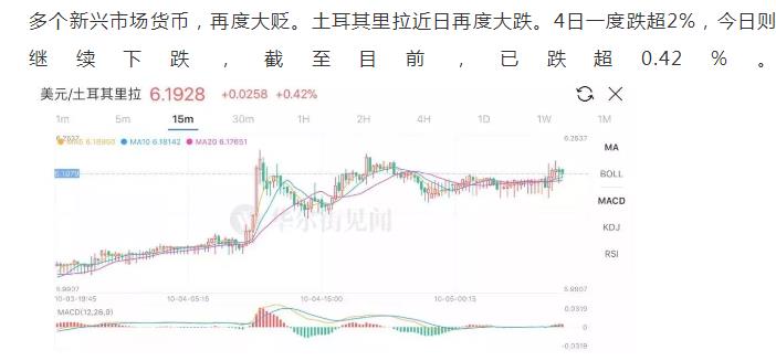 本周新兴市场货币遭受的又一轮“血洗”,始作俑者是美元走强。特别是10月3日,美联储主席鲍威尔发出了加息的鹰派言论:美国经济表现“相当正面”,“经济非常弱的时候,我们确实需要相当宽松的低利率,现在再也不需要,它们再也不适合了”。鲍威尔这番话,对许多投资者来说无异晴天霹雳。话音未落,美元指数大涨,讲话期间一度逼近96关口,日内涨幅0.5%左右。采访结束后,在纽约尾盘升破96,创六周新高。