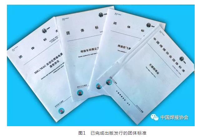 2017年12月,由中国焊接协会与中国电器工业协会牵头,联合国内主要焊接设备生产企业如山东奥太电气有限公司、唐山开元集团、北京时代科技股份有限公司、南通振康焊接机电有限公司、上海通用电焊机股份有限公司、无锡汉神电气股份有限公司等二十余家单位共同完成了《MIG/MAG自动化焊接电源接口与通信协议》团体标准制定工作,“MIG/MAG自动化焊接电源接口与通信协议”团体标准是国内外就相关内容提出的第一个标准,该标准以目前在国内外焊接制造中应用最普遍、最广泛、影响力最大的MIG/MAG焊接方法和技术为对象,规范和约定了其应用于自动化焊接背景下的核心设备--焊接电源的接口和通信协议,期望对焊接自动化和智能化应用中的焊接电源与相关设备就有关工艺、质量、控制、管理等信息的交换,焊接系统(或工作站)、自动化和智能化焊接焊接生产线或焊接车间物联网的搭建,设备之间信息的互联互通,焊接工艺、质量、管理大数据的收集积累及改善应用,焊接云管理和云服务的实现起到积极规范的引导和促进作用。该标准已于2018年5月发布。随着对环境保护的要求越来越高,以及人工市场的激烈竞争,降低劳动成本的压力也越来越大,焊接防飞溅剂做为一种既环保、又可免除工人人工进行清除粘附在焊接件上的飞溅,从而降低生产成本的新产品,受到行业广泛关注。特别最近几年,随着焊接防飞溅剂生产技术的进步和应用领域的拓展,高效优质焊接防飞溅剂品种更为齐全,焊接防飞溅剂使用比例逐步提升,同时对焊接防飞溅剂也提出了更高的标准和要求。为满足焊接防飞溅剂供需双方对该产品检验标准的需求,拓展该产品的应用领域,同时也为了规范防飞溅剂产品良莠不齐的市场环境, 2018年1月,三洋物产贸易(上海)有限公司提出《焊接防飞溅剂检验方法》团体标准立项申请,并联合福建省特种设备检验研究院、中车长春轨道客车股份有限公司、上海锅炉厂有限公司、上海汽车集团股份有限公司、上海汇众汽车、上海工程技术大学等生产单位、用户单位共同完成该团体标准制定工作。该标准于2018年5月发布。已完成出版发行的团体标准见图1。