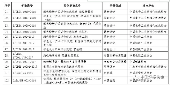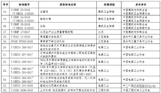 2018年团体标准应用示范项目名单