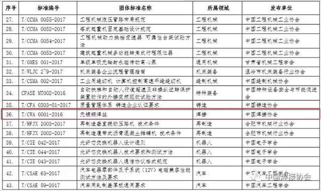 行业快讯:中国焊接协会《无镀铜焊丝》团体标准入选 工业和信息化部关于公布2018年团体标准应用示范项目名单