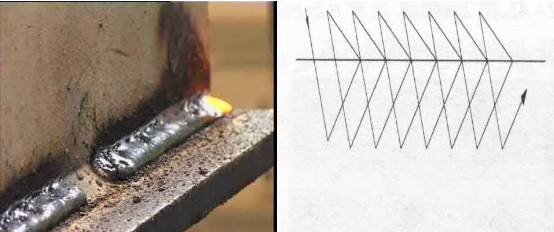 焊条末端作锯齿向前摆动,并在两侧稍作停留,以防止产生咬边。此种方法操作容易,应用广泛。适用于平、立、仰焊位对接焊缝各层焊道的焊接。