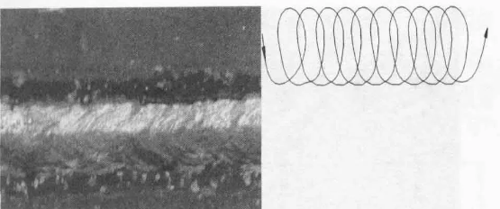 焊条在运行时应该稍作横向摆动,其目的是能获得均匀一致的焊缝成形,同时也是为了控制熔池温度,防止由于熔池温度过高而产生焊缝的烧穿现象。