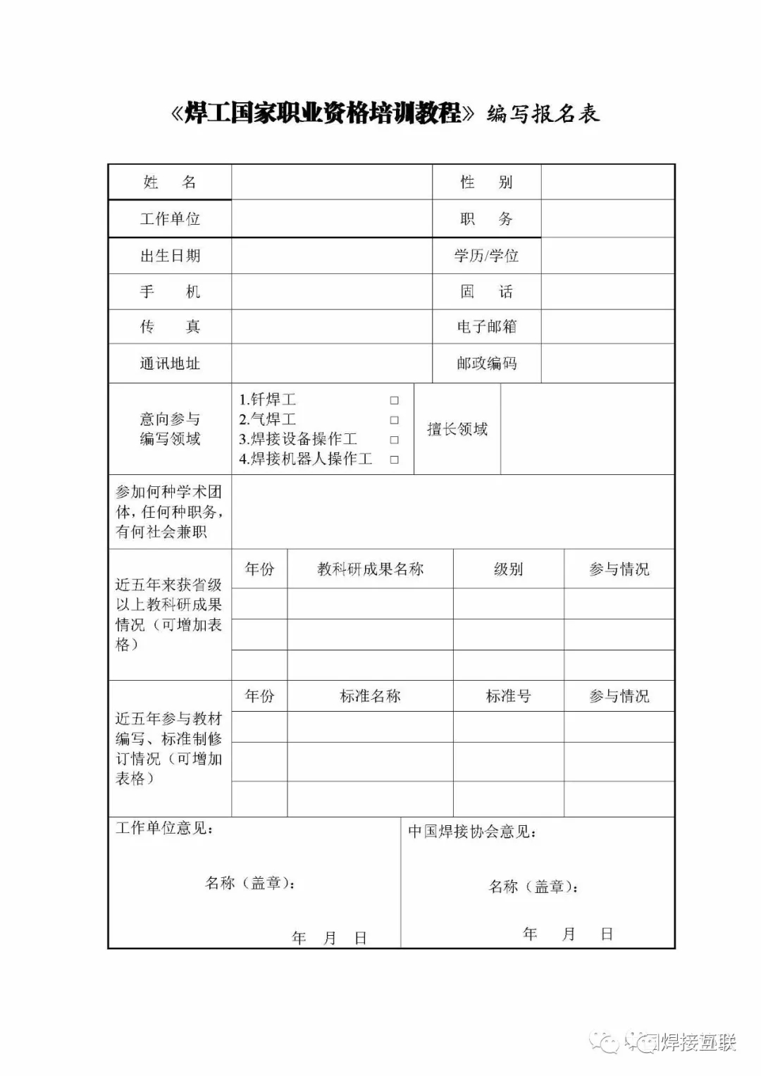 关于征集《焊工国家职业资格培训教程》编写专家的通知
